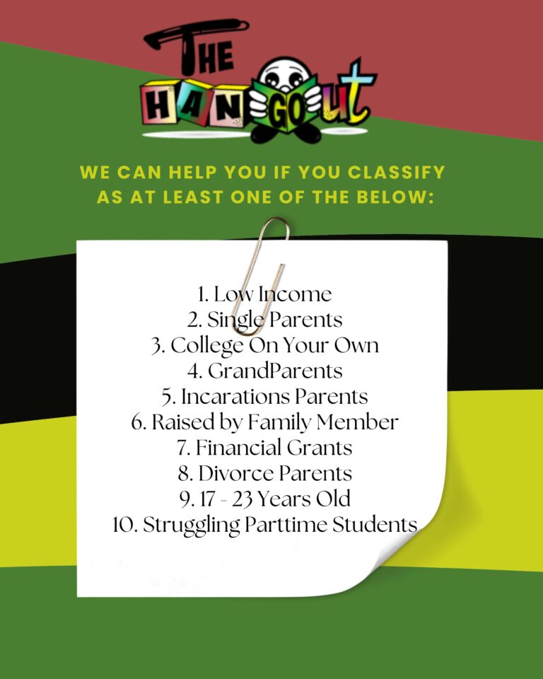 The Hangout, a 501(c)(3) nonprofit organization based in Fort Worth, Texas. We are dedicated to empowering high school students and potential college-bound individuals by providing the essential necessities and support they need to thrive both academically and personally.
